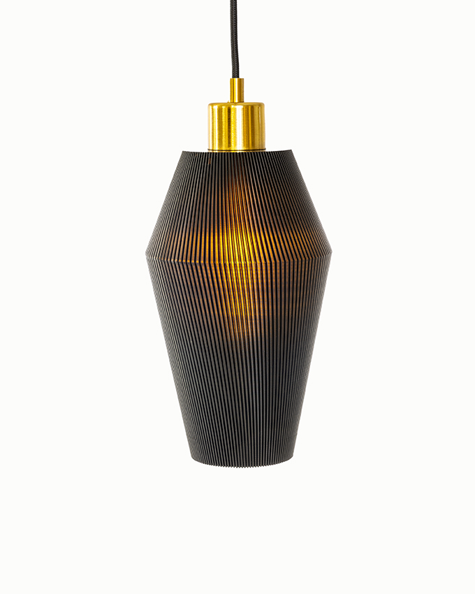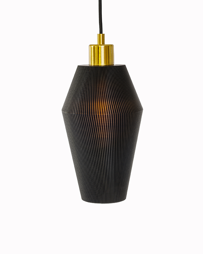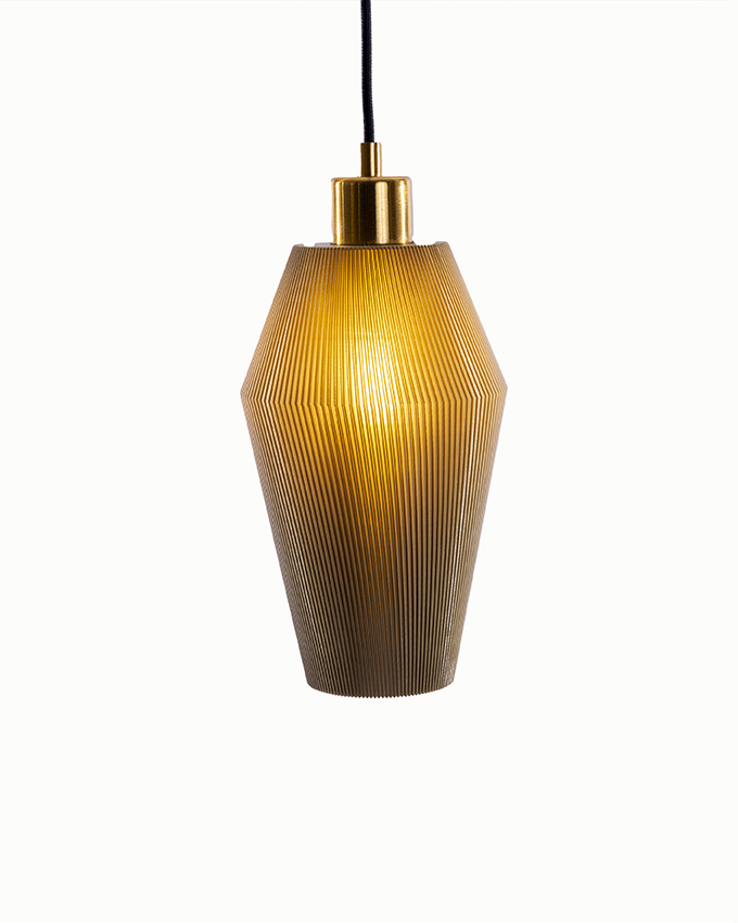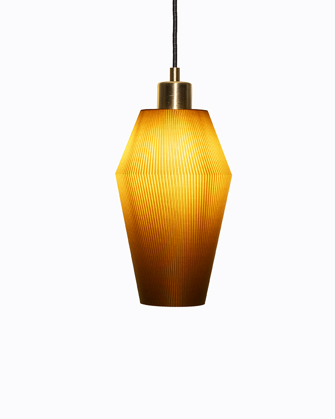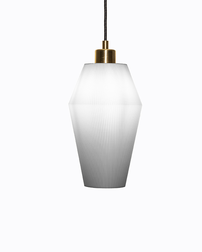 Sling är vår minsta lampa - 15 cm hög och 13 cm bred vid midjan. Passar perfekt i ett fönster, över bardisken eller över köksön. Kombinera med flera lampor i grupp eller på rad som på bilden.