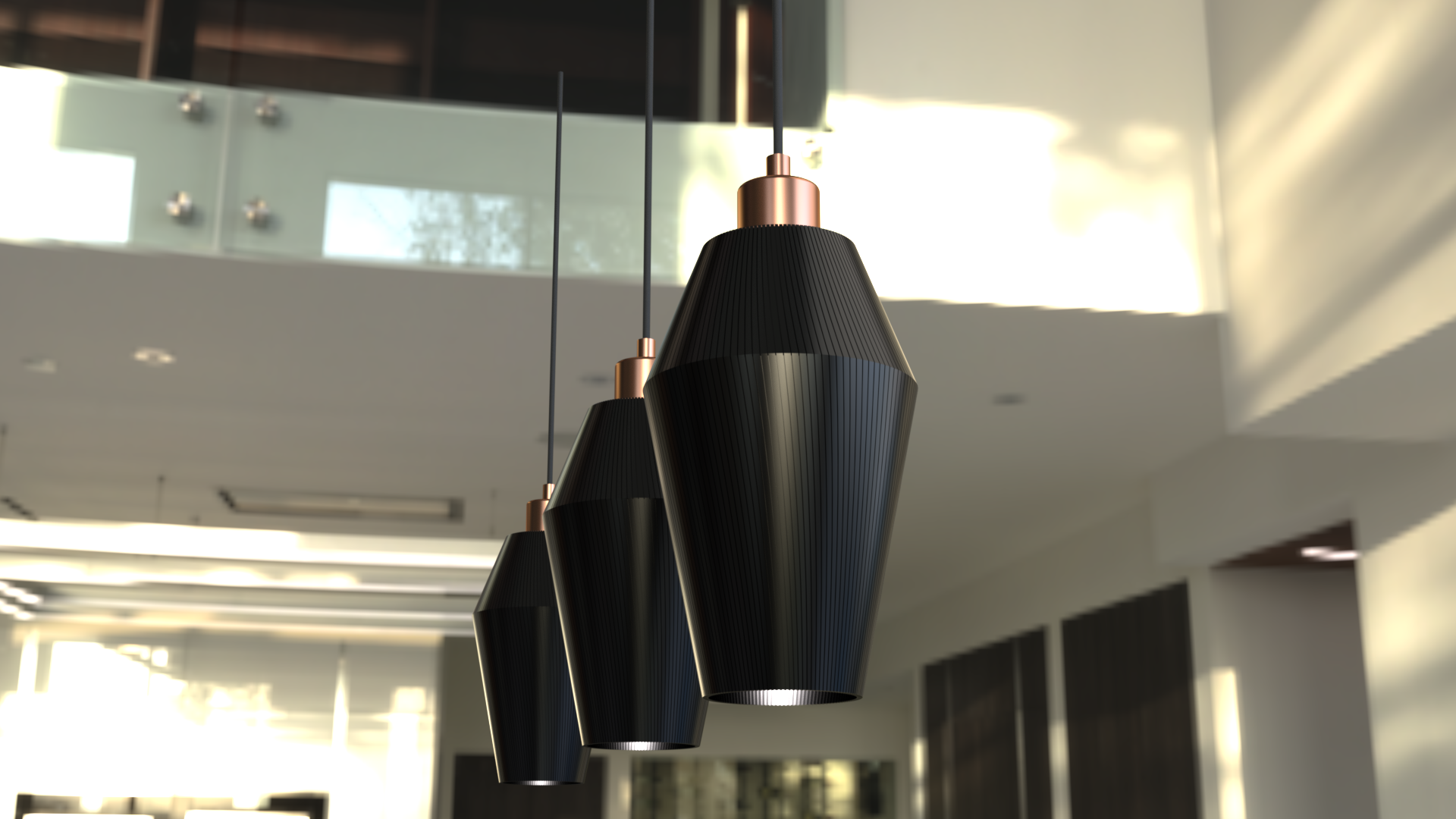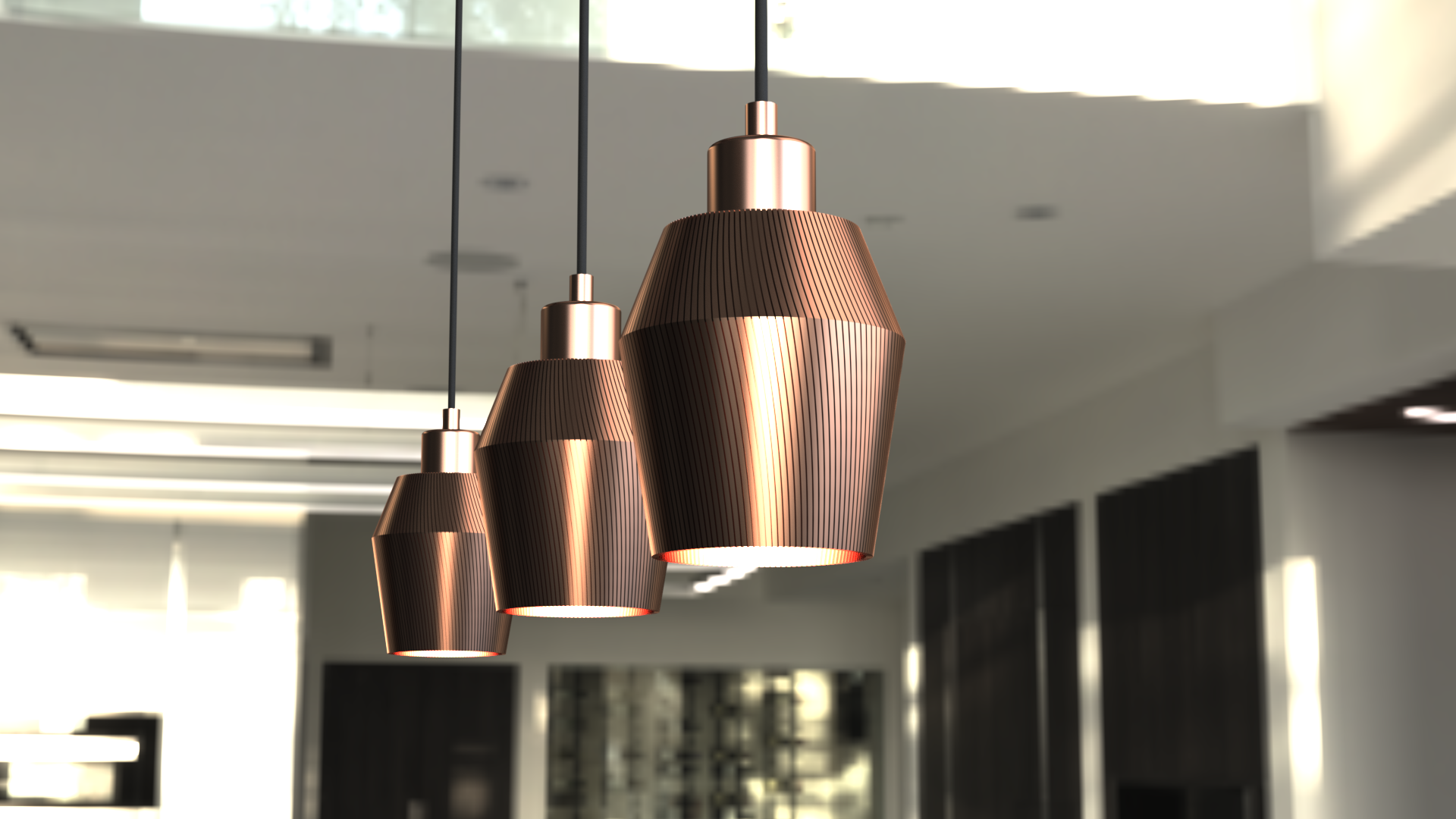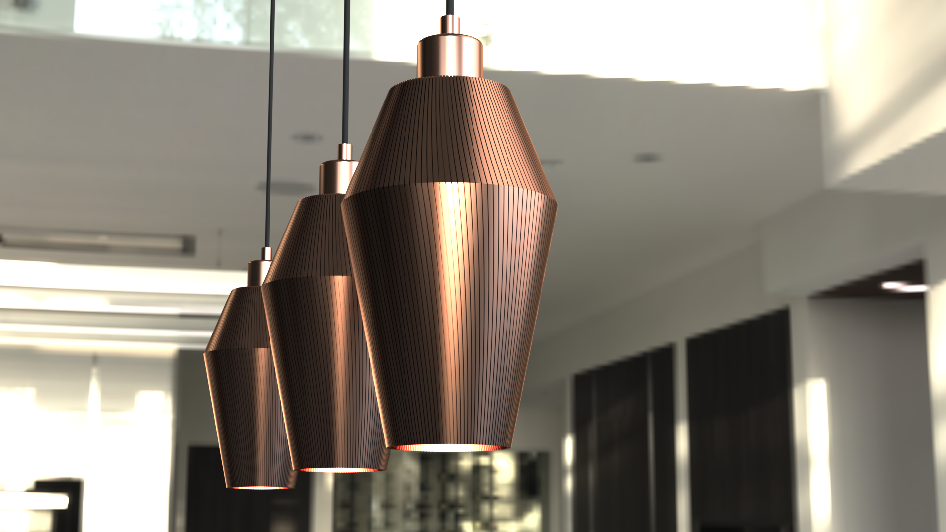 Sling är vår minsta lampa - 15 cm hög och 13 cm bred vid midjan. Passar perfekt i ett fönster, över bardisken eller över köksön. Kombinera med flera lampor i grupp eller på rad som på bilden.